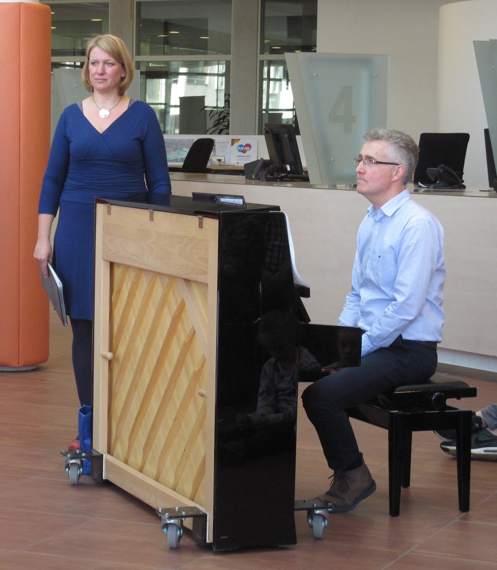Afgelopen zondag hebben we onder veel belangstelling een mooi optreden gegeven in de hal van het Gemeentehuis. Elske nogmaals bedankt voor je enthousiasme en inzet de afgelopen periode en ook Hans natuurlijk bedankt voor de, zoals altijd, prachtige muzikale begeleiding.