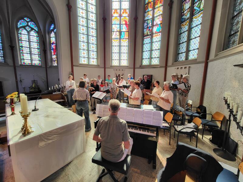 Zaterdag hadden we onze eerste zangdag, met een vol programma. Met name aandacht voor de liederen voor ons komende jubileum Een waardevolle, leerzame en intensieve dag onder enthousiaste leiding van Līga. Natuurlijk ook tijd voor de lunch en een koffie/thee moment. Vanwege het mooie weer in de achtertuin van de parochiezaal. Buiten dat het leerzaam was, ook heel gezellig.