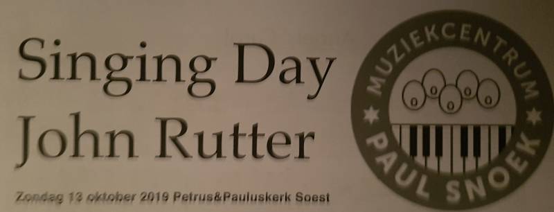 Op zondag 13 oktober 2019 gaf John Rutter voor Muziekcentrum Paul Snoek voor de zesde maal een ‘Singing-day’ in de Petrus&Pauluskerk in Soest. Deze dag nam hij ons weer mee door een groot aantal van zijn werken, zowel bekend als ook nieuw materiaal, en voorzag ons daarbij van handige tips en tricks vanuit zijn praktijk: altijd zeer inspirerend!